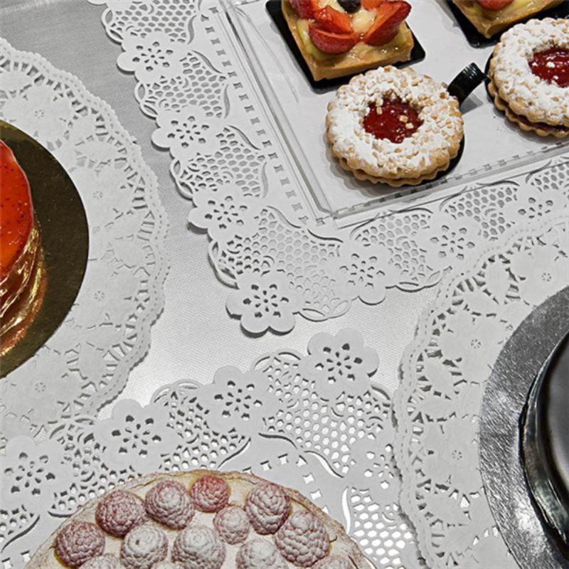 Las blondas rectangulares de 37×44 cm son una solución elegante para presentar bandejas grandes, tartas y elaboraciones de gran tamaño. Su diseño calado aporta higiene y estética profesional.